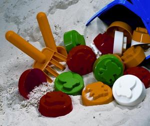 "SAND ZOO" sets of animal-shaped sandpit moulds. Bright-coloured moulds made of environmentally-friendly material.